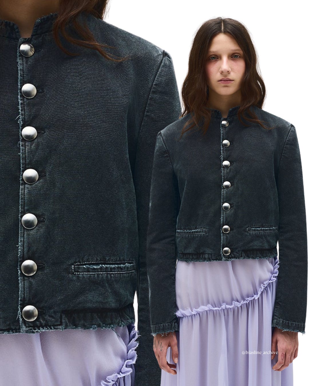 Cropped Stand Collar Blouson - Faded Black - Vintage Votton Canvas - Distressed Details - Frayed Trim - Stand Collar - Button Closure - Side Pockets - Cropped Hem - 100% Cotton - Made in Italy